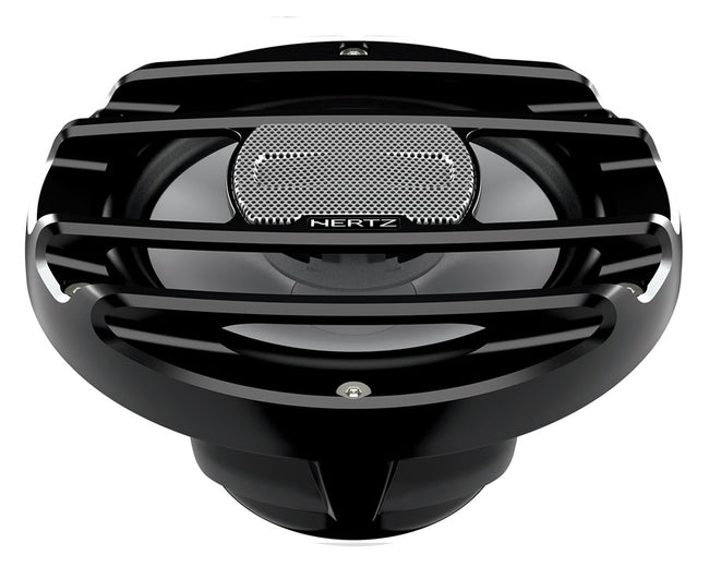 The HMX 6.5 S hi-performance powersport coaxial speakers is optimized to perform in infinite baffle, with a solid bass and an outstanding output. The tweeter feature an acoustic lens optimized for best off-axis dispersion and maximized SPL. The attractive stainless steel tweeter mesh grille provides perfect high-frequency transfer and a rock-solid protection. The UV resistant polypropylene cone co-molded with Santoprene rubber surround together with the basket and grille injected with a Hi-temperature and UV resistant polymer neutralize water, dust and mud. The aramid fiber spider with silicone-insulated lead wires ensures durability and constant performance over time. The high-excursion mobile equipment is driven by a massive magnetic group, to deliver high undistorted sound pressure.