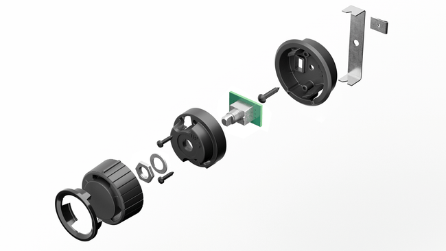 The stylish Hertz HRC 02 remote control is ready for tape surface mounting, screw surface mounting, and recessed mounting, thanks to the provided accessories.