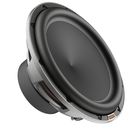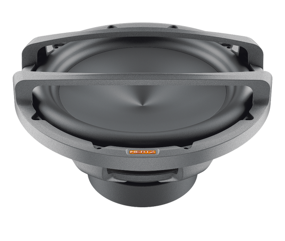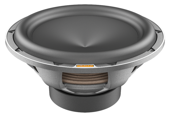 Outstanding performance in a compact size, this is the target of Mille Pro car audio subwoofers. On the strength of its know-how acquired with Mille Legend, the R&D team has optimized the production process to offer the “Hertz Sound Experience” to a wider audience using part of the technologies and materials of the flagship line. The MP 300 D4.3 cone is made by pressing paper pulp with the injection of mineral powders, the same construction technique used for Legend. The V-cone® profile increases rigidity, allowing the cone to function like a piston. Surround materials consist of high-purity IIR-butyl rubber. Like the Legend ML2000.3 and ml2500_3, the Mille PRO subwoofers are built with Boundary Free Surround technology allowing for a greater emission surface with equal diameter, generating higher sound pressure. The compact 6-spoke aluminum alloy anti-resonant basket is the same as the top model ML 2500.3 and contributes to the subwoofer’s mechanical damping, being absolutely transparent to the sound. The 65-mm 4-layer voice coil is higher than 60 mm and wound in a TIL-P former, thus delivering high linear displacement. The 4 Ω + 4 Ω DVC impedance configuration improves versatility to match any amplifier system. The air cooling and decompression system avoids the need for a centre hole on the bottom plate with three advantages: