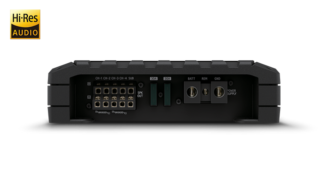 - Per Channel into 4 Ohms, 14.4V (≤1%THD+N): 4 x 40W + 1 x 200W