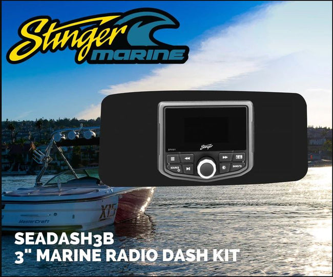 The SEADASH3B dash kit lets you add or convert to a round gauge-style marine aftermarket radio, even if the current opening is an oversized splash protector or single DIN rectangle.