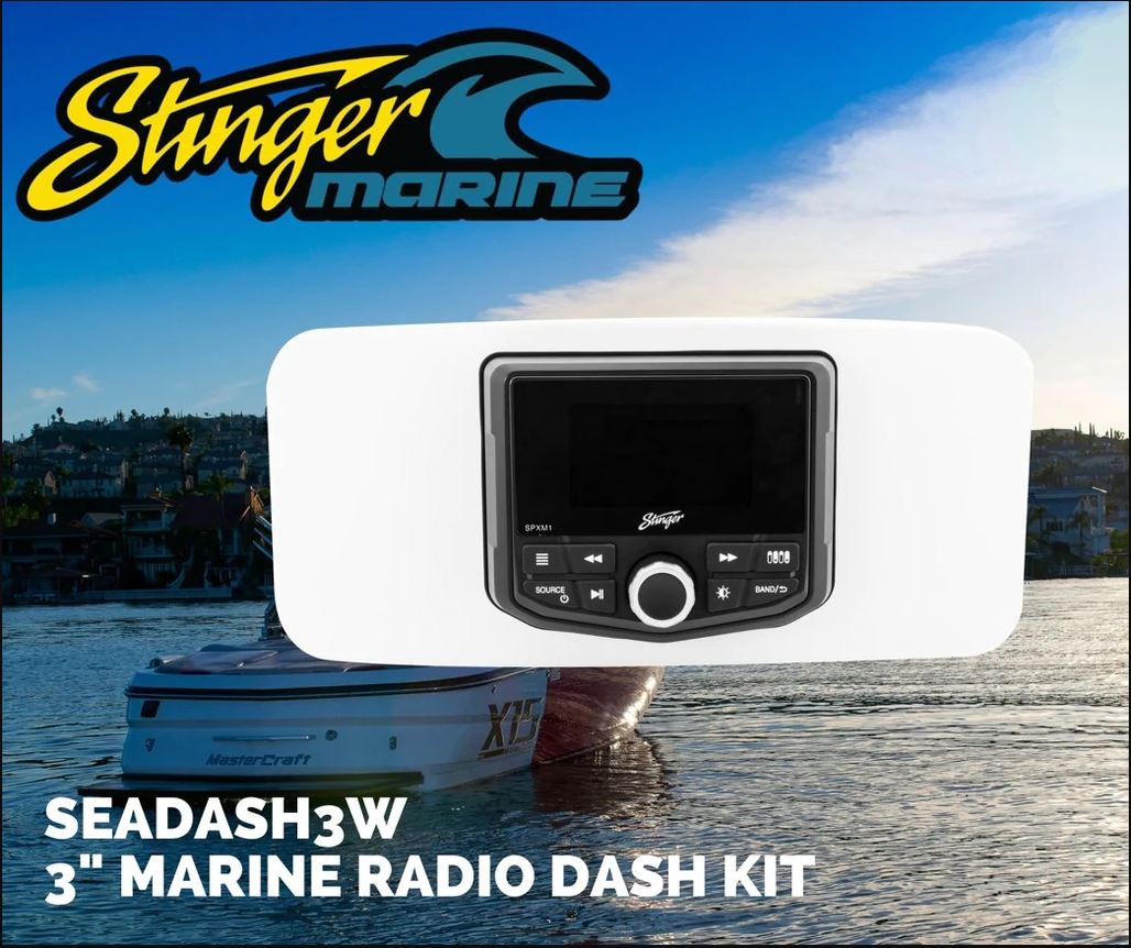 The SEADASH3W dash kit lets you add or convert to a round gauge-style marine aftermarket radio, even if the current opening is an oversized splash protector or single DIN rectangle.